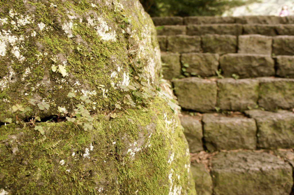 I arrive at a fork in the road, with signs pointing in either direction that are written in Japanese. I wait for a while for the Duck to show up. When she doesn’t, and since I cannot read the signs at all, I follow the path that I see a few other hikers go down. What’s the difference, as long as I get to the bottom of the mountain, right? But even these hikers disappear ahead of me in time as I hobble gingerly down the slope. The sun is rising now and really beginning to beat down as I leave the high elevation behind. In fact, it is getting downright hot. I think of my water bottle and realize that it is in Duckie’s backpack, along with my wallet. I seem to be all alone on the mountain with not a single other person in sight. I check my cell phone. One bar.